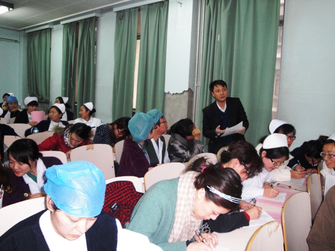 2012年12月6日应北 大口腔医院的邀请,朱春晖老师为医院教职工200余人讲课,朱老师从写字如何快速入门、如何写好结构、以及如何把一篇文章写得又快又好这三个方面进行了讲 解,医院教职工听后纷纷说:“朱老师的讲解让我们对写字的疑惑问题豁然开朗,今后在病案的书写中就可以真正做到写得快、写得好。”